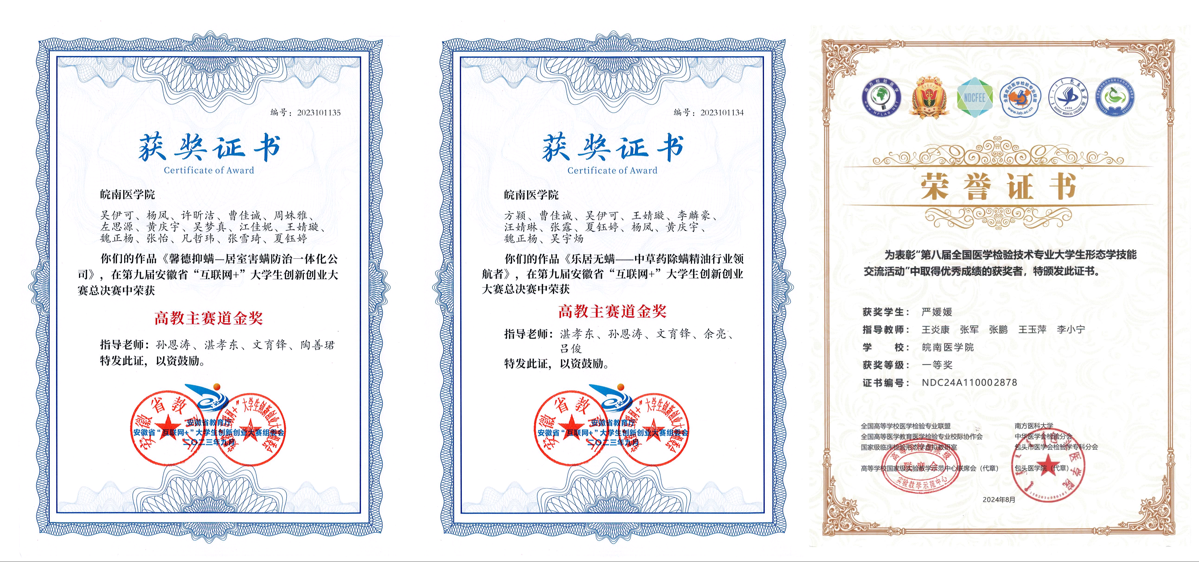 学院始终坚持以习近平新时代中国特色社会主义思想为引领,组织开展科研培训交流,鼓励学生参加校、院科研兴趣小组,参加各类课外竞赛。近5年,学生获大学生创新创业训练项目国家级18项、省级37项;“生命科学竞赛”国赛三等奖1项,省赛二等奖2项、三等奖3项;“挑战杯”省赛二等奖5项、三等奖1项;“互联网+”大赛省赛金奖2项、银奖5项、铜奖4项;“伊利康杯”华东六省一市高等院校医学检验技术专业技能大赛团体特等奖1项、二等奖3项,技能竞赛单项金奖4项、知识竞赛单项金奖1项;全国医学检验技术专业大学生形态学大赛一等奖1项、二等奖1项、三等奖2项;“人卫杯”全国高等学校大学生卫生检验与检疫专业综合技能竞赛二等奖1项;1名学生参加第16届国际蜱螨学大会并作汇报,3名学生参加两岸高校大学生学术交流并作汇报;本科生发表论文39篇,其中SCI论文13篇。同时,学院教职工主持科研项目40余项,包括国家自然科学基金6项、省级自然基金3项、省教育厅项目17项、省高校协同攻关项目2项、省学科(专业)带头人培育项目1项。