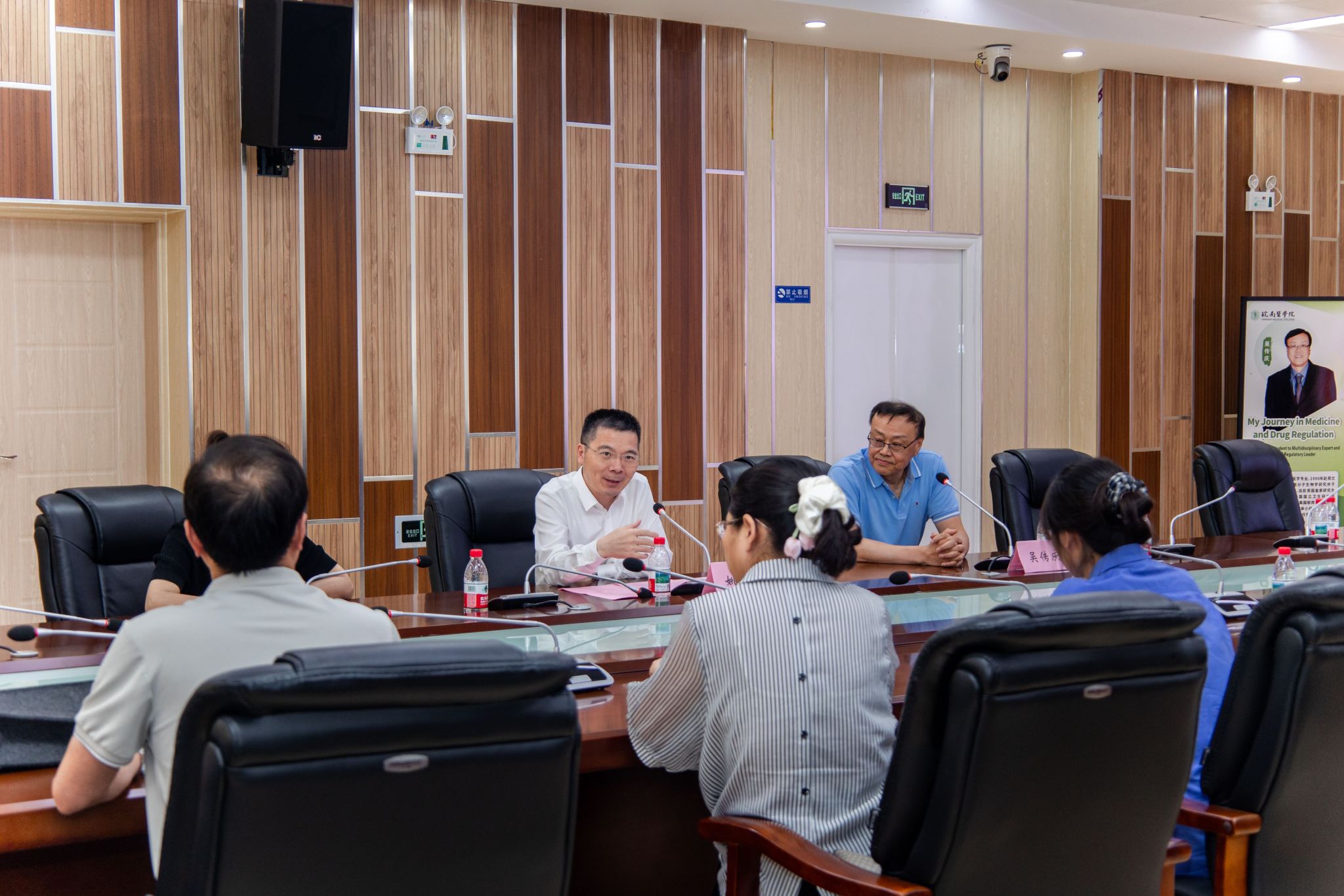 6月24日下午,第十二期“校友论坛”在4号实验楼2楼会议室举行。1983届临床医学专业校友吴传庆应邀为我校师生带来一场主题为“我在医学与药品监管领域的历程——从医学生到多学科专家与全球监管领导者”的精彩报告。论坛由党委副书记、院长姚应水主持。
