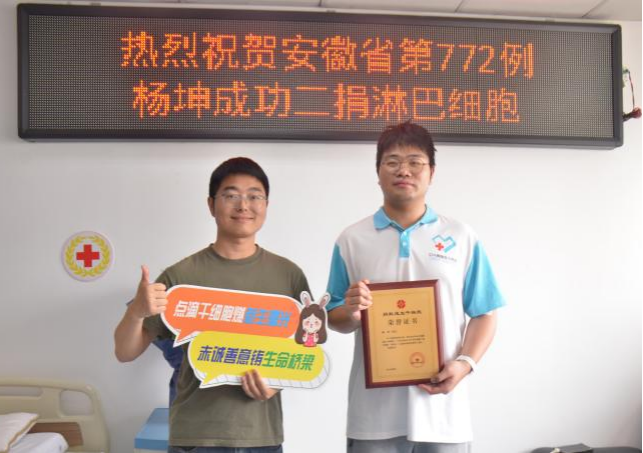 两度挽袖书写生命奇迹 我校2023级杨坤同学顺利完成二次捐献
