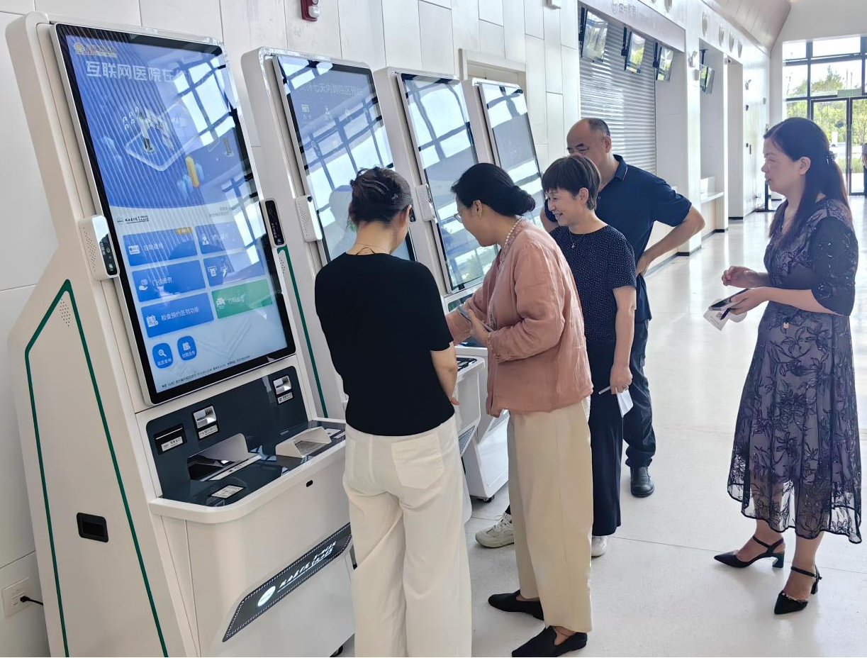 夏劲松实地深入江北院区门诊诊区、影像中心、住院部病房等地,详细了解门诊分布、诊疗环境及诊疗流程,并现场体验使用预约挂号系统。