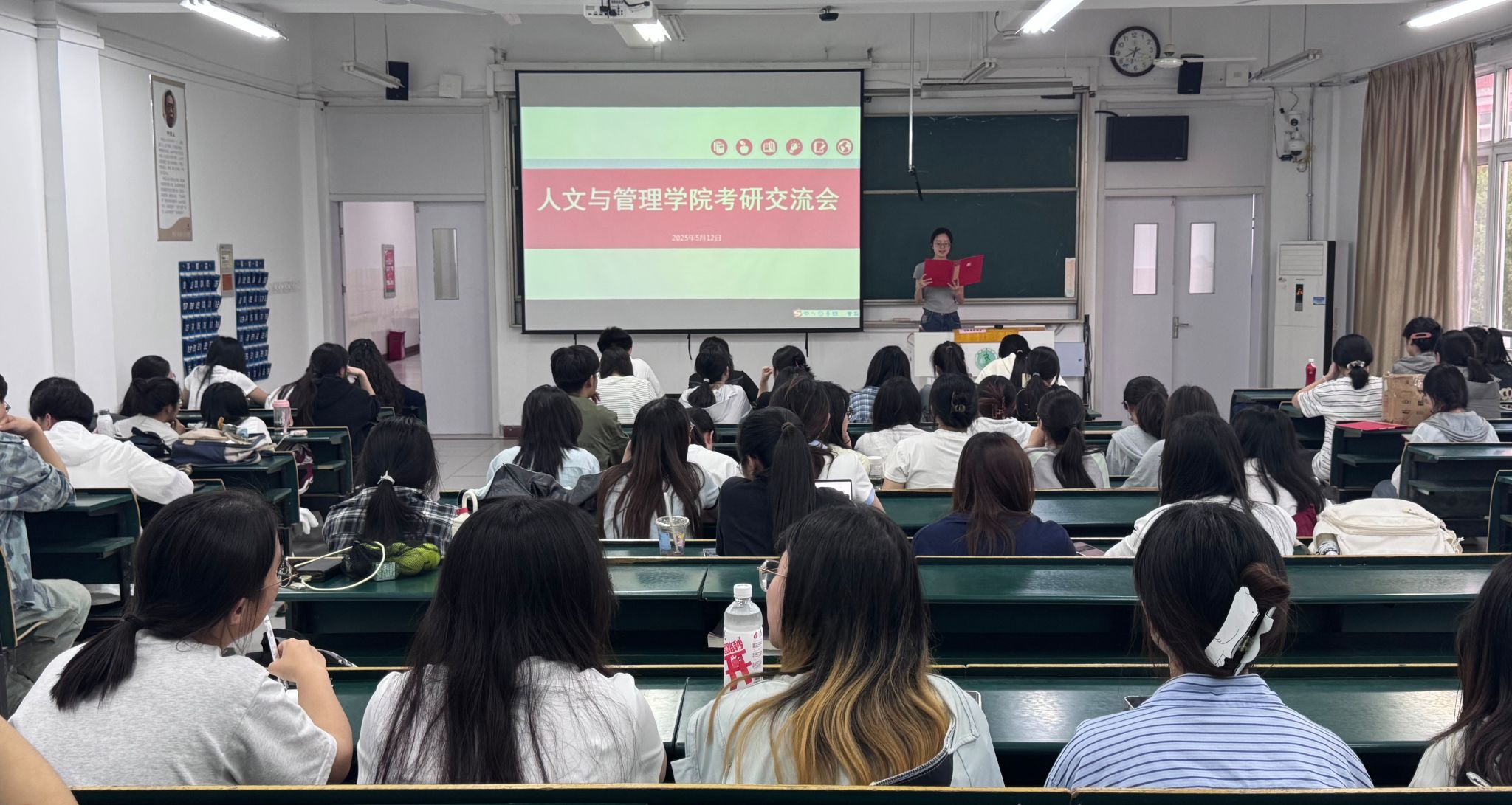 为帮助低年级学生科学规划考研路径、掌握备考方法,营造良好学习氛围,5月12日,人文与管理学院组织开展"研途引航"考研经验交流会。活动邀请2021级各专业考研上岸学生进行专题分享,全院各年级共计200余名同学参加。