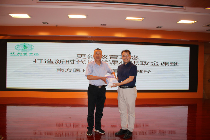 9月18日,南方医科大学董为人教授应邀来我校作题为“更新教育理念,打造新时代医学课程思政金课堂”的学术报告,报告会由教务处、基础医学院联合主办,基础医学院院长李铁臣主持会议。