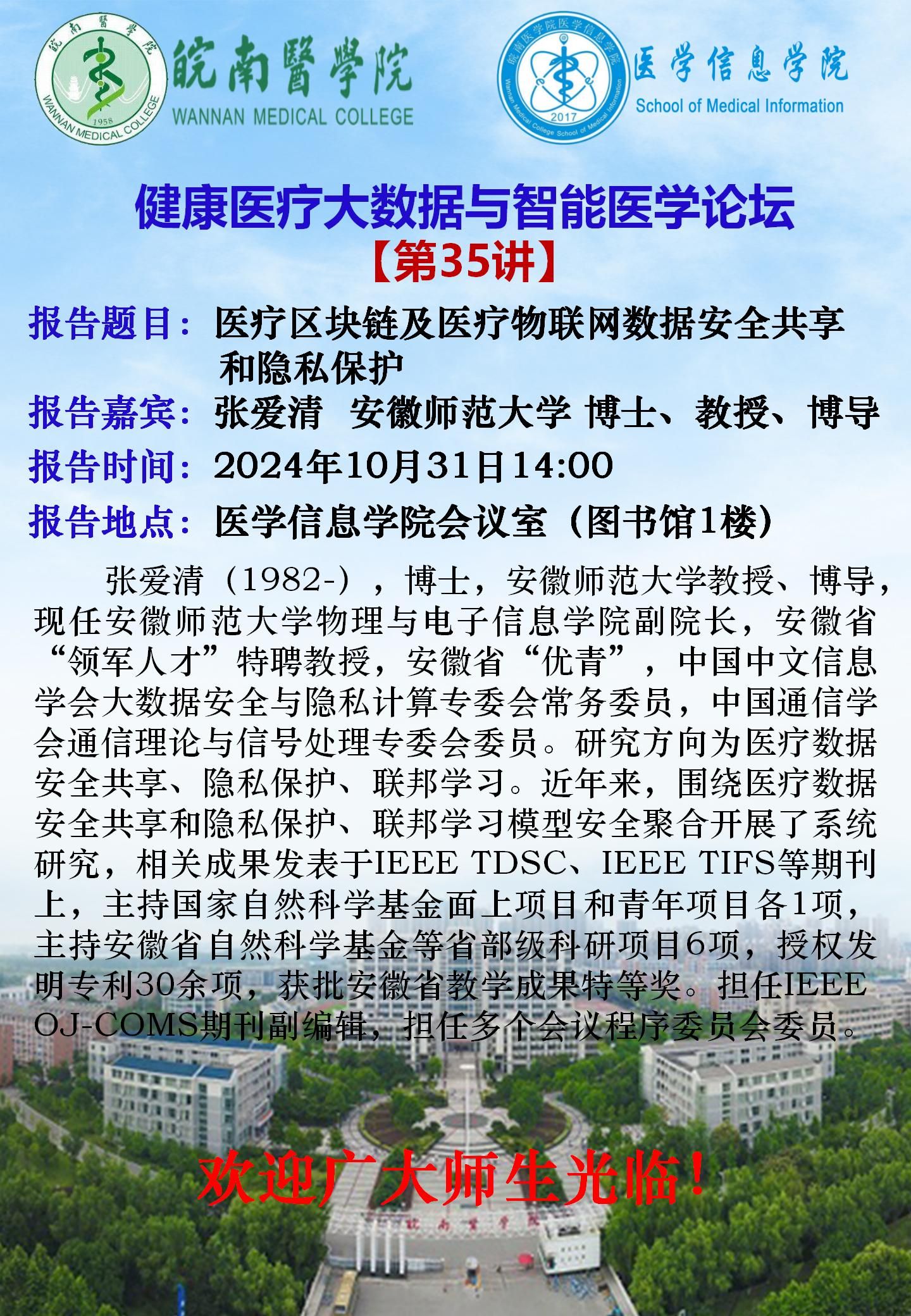 健康医疗大数据与智能医学论坛第35讲:医疗区块链及医疗物联网数据安全共享和隐私保护